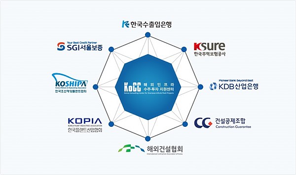 инфраструктуры и инвестирования. Всего 8 организаций: Корейский банк импорта и экспорта, Корейская корпорация страхования торговли, Корейский банк развития, Корейская ассоциация заводской промышленности, Сеульская