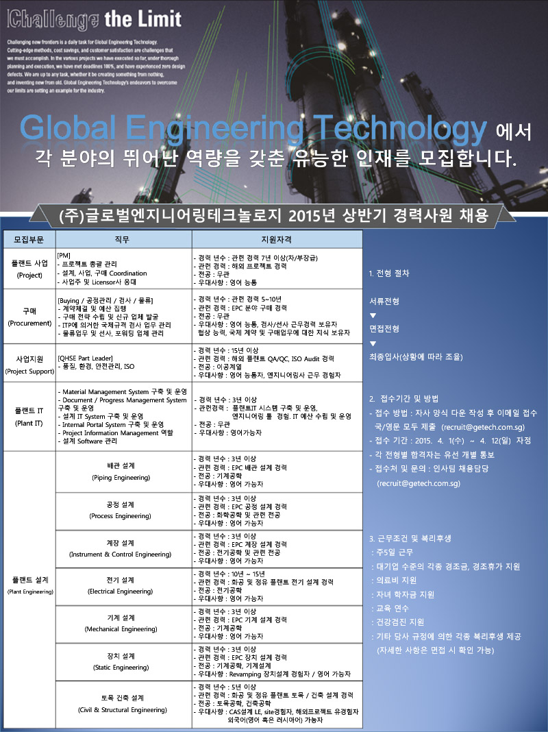 2015년 ㈜글로벌엔지니어링테크놀로지 경력사원 채용(마감)