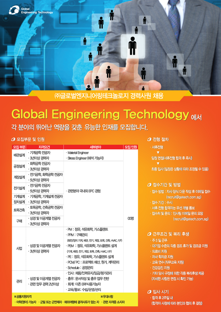 ㈜글로벌엔지니어링테크놀로지 경력사원 채용안내